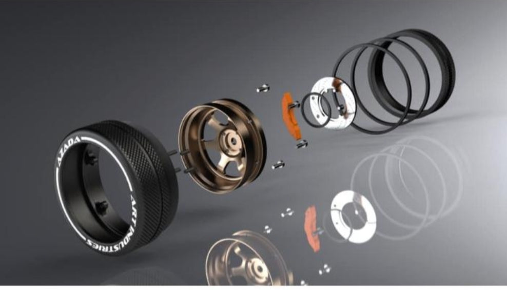 The Azada Steering Wheel design features an adjustable offset to suit different transmitters, with all spacers fitted out of the box. To adjust it simply unscrew the back of the grip and adjust the amount of spacers installed.