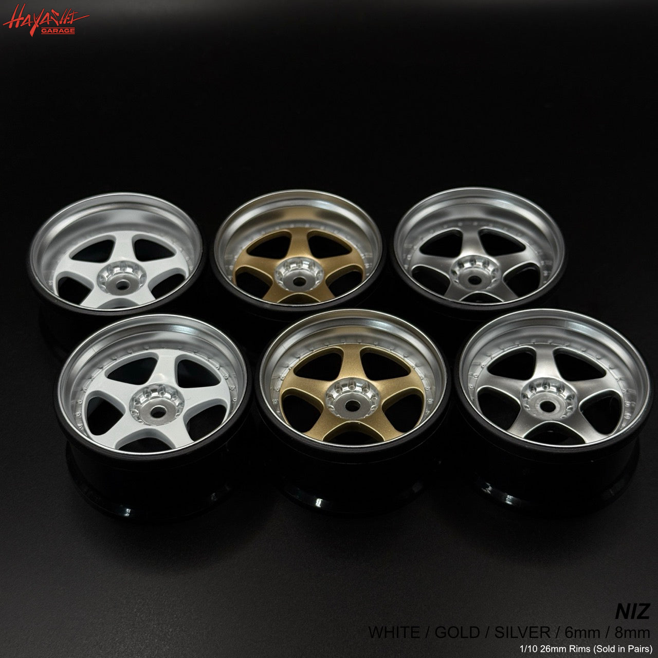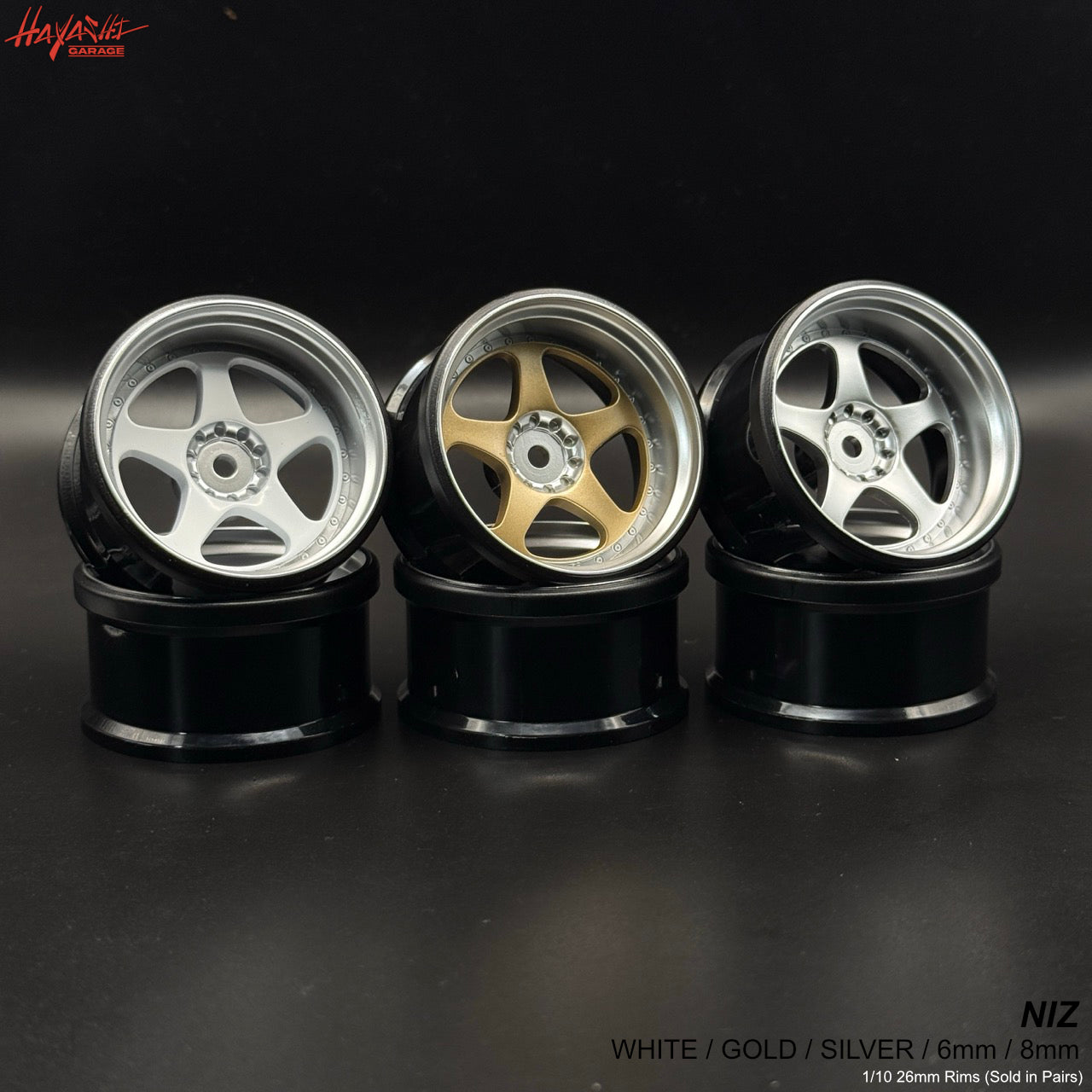 NIZ 5-Star Multipiece Style 1-10 Rims 6mm White Gold Silver [Hayashi Garage]