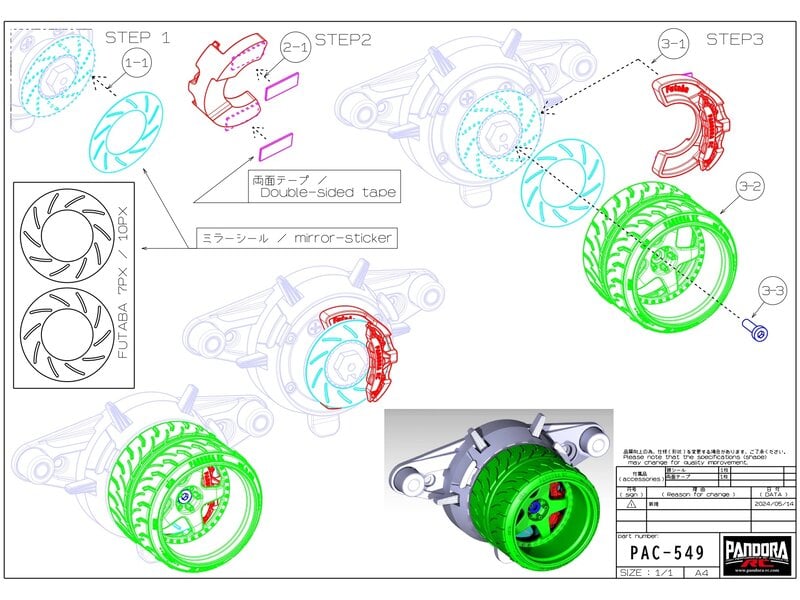 - Attached : Mirror seal for discs, caliper,Double-sided tape (for fixing the caliper)